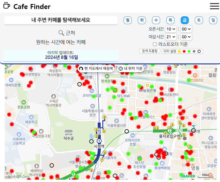 내 주변 늦게까지 하는 카페 검색하기 [Cafe Finder]