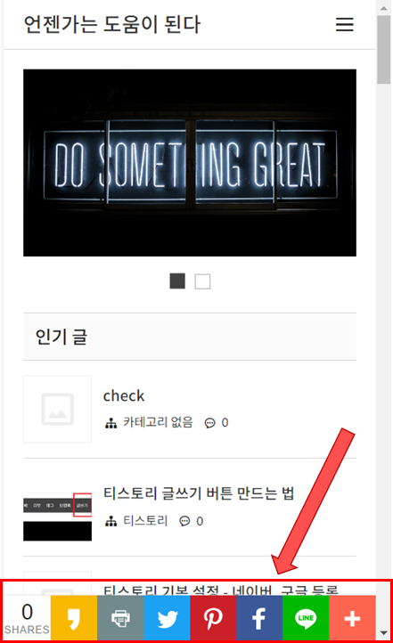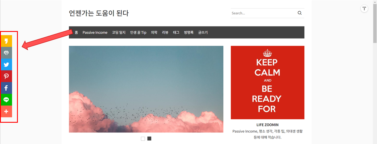 4. 그럼 본 블로그에서처럼 좌측에 SNS 공유 도구가 생긴다!