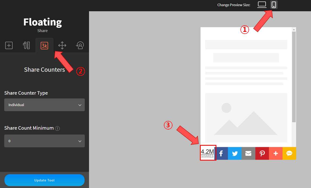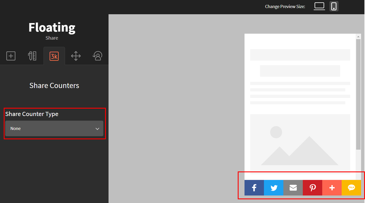 우측 상단의 모바일 아이콘을 클릭하고 Share Counters에 들어가면
