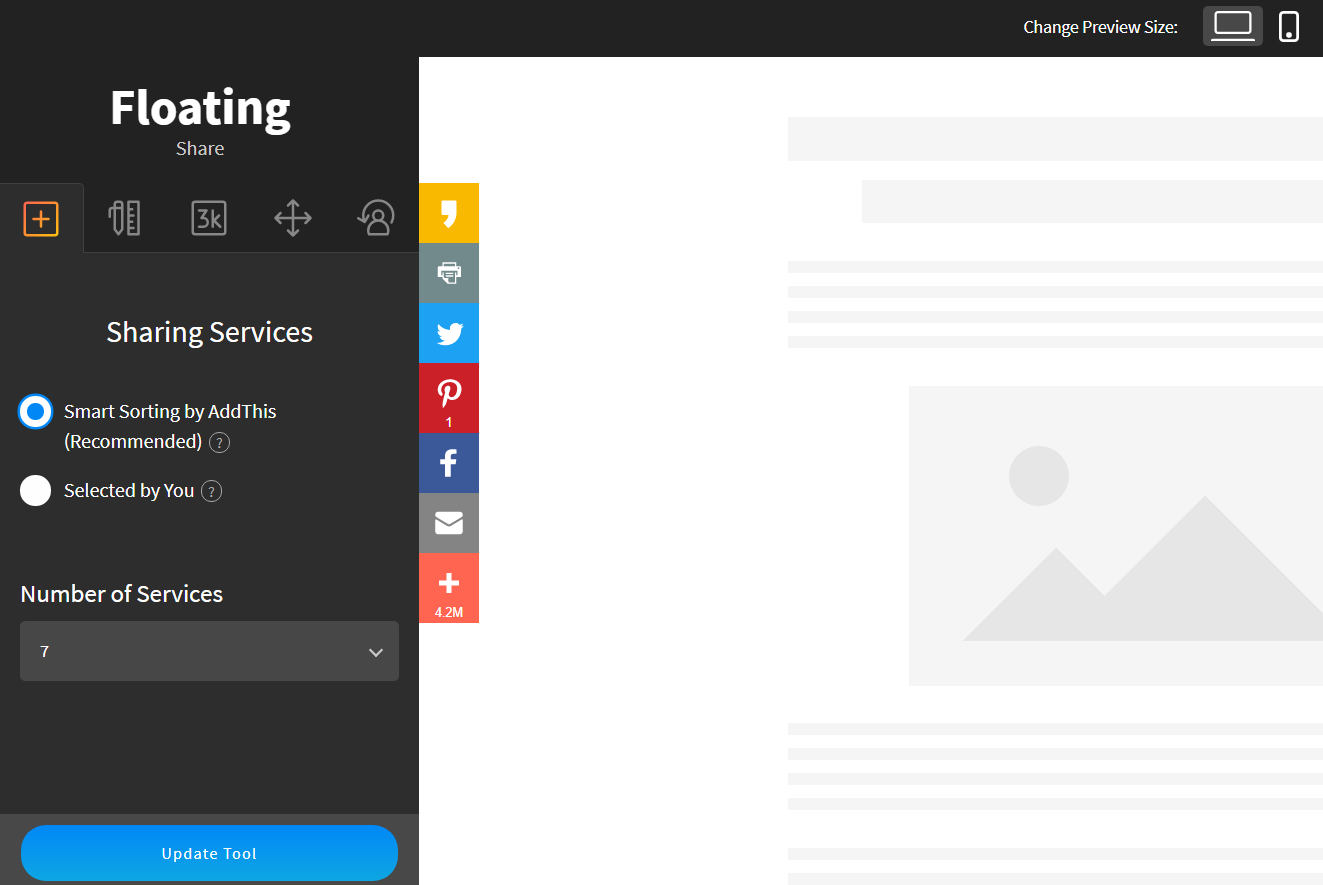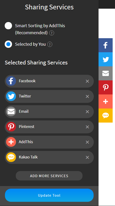 AddThis Floating 도구에서 어떤 SNS 보여줄지 설정하기