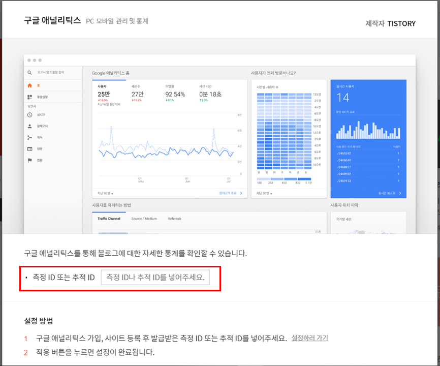 7. 마지막으로, 여기서 얻은 ID를 티스토리 플러그인을 통해 입력해준다.