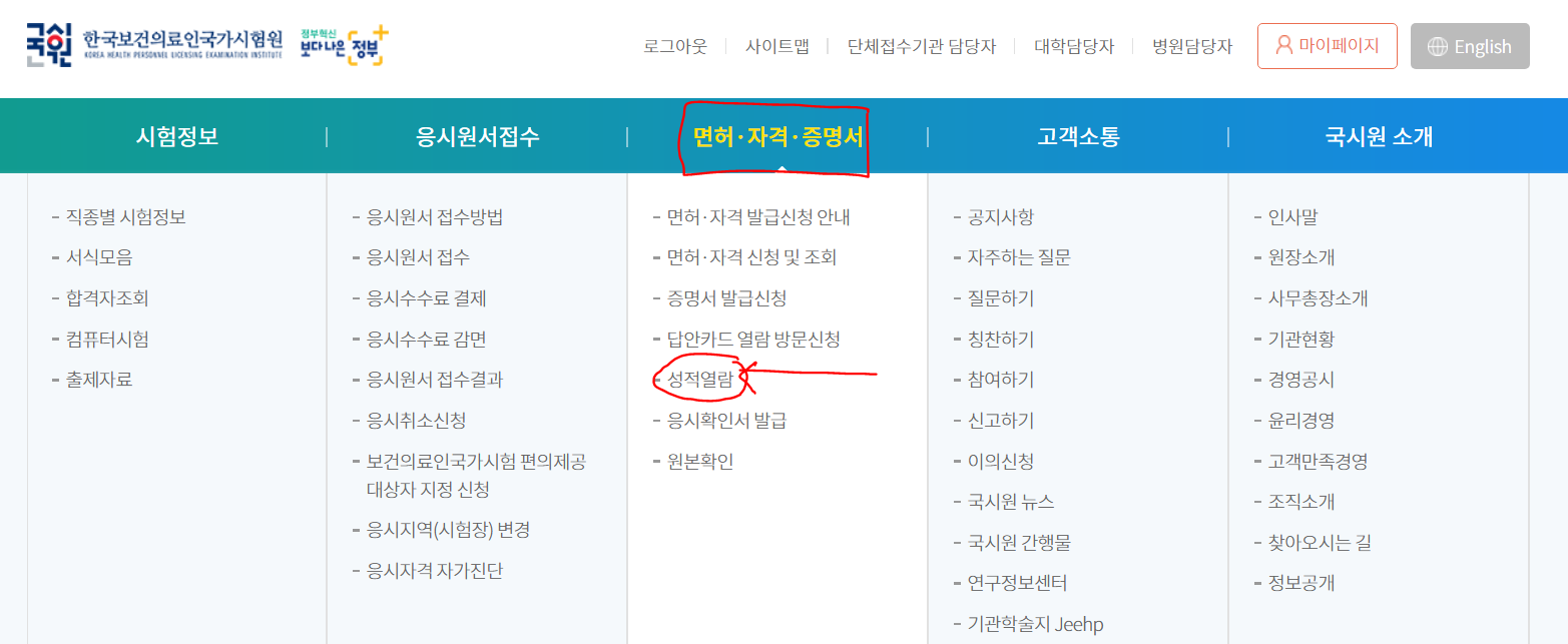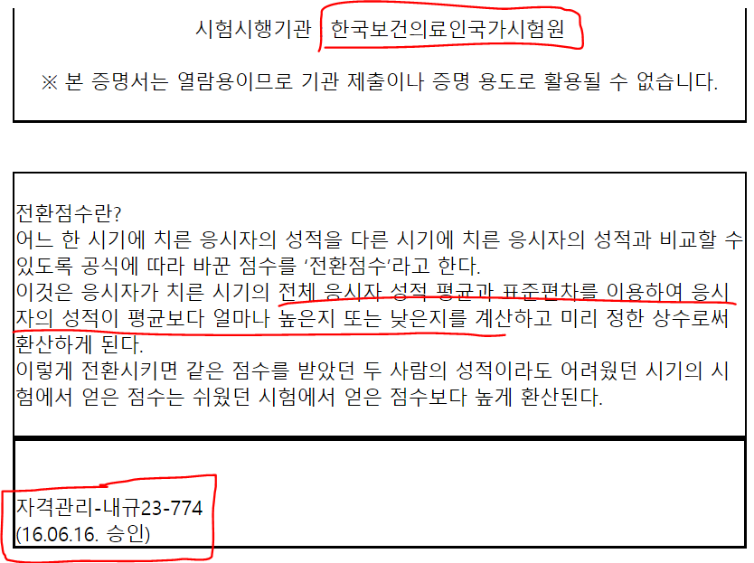 이렇게 생각한 이유는 국시원에서 전환성적 열람하면 뜨는 페이지에 아래처럼 적혀 있기 때문이다.