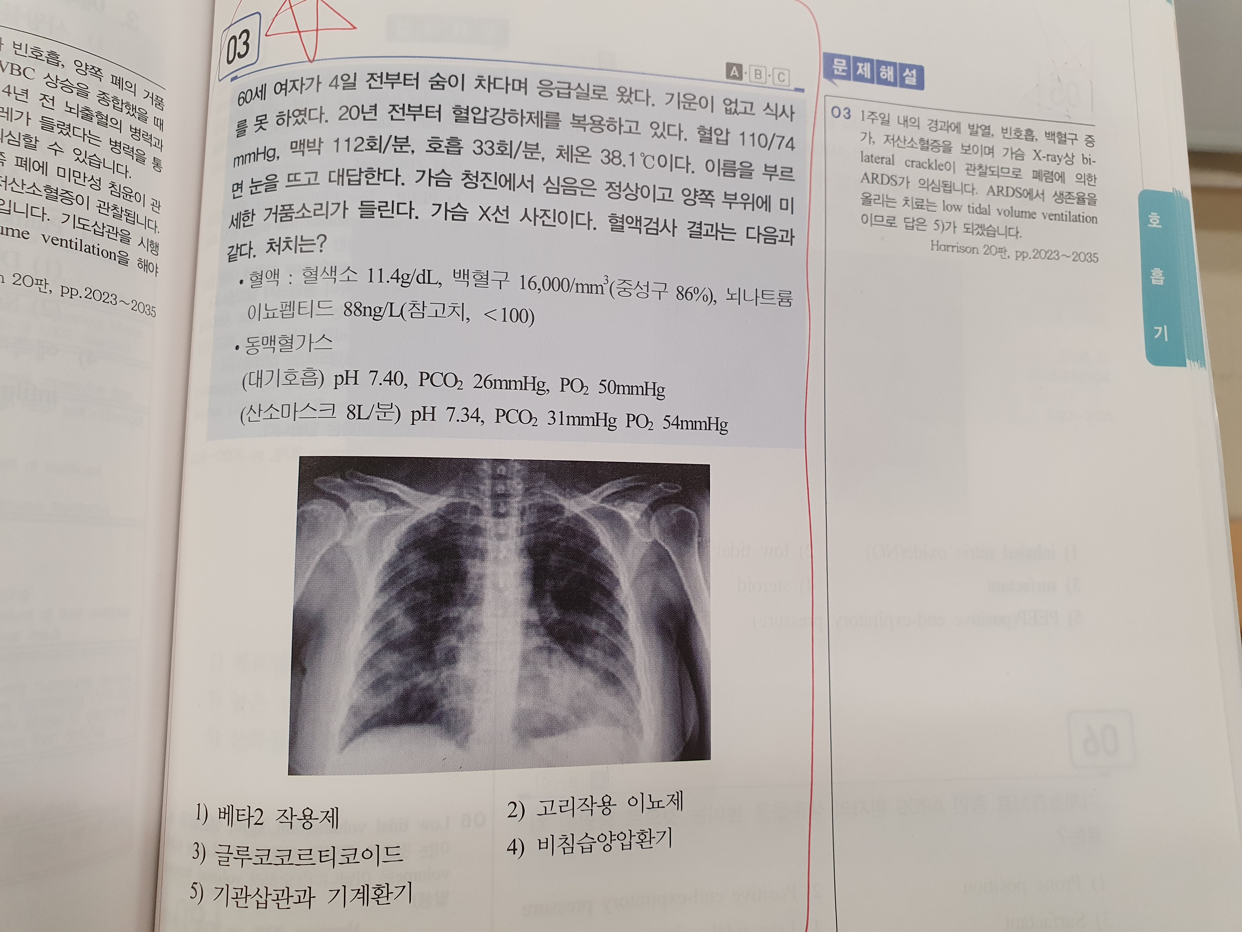 답이 NIV 였던 경우 ( 이 정도는 기관 삽관까지는 아니다~)