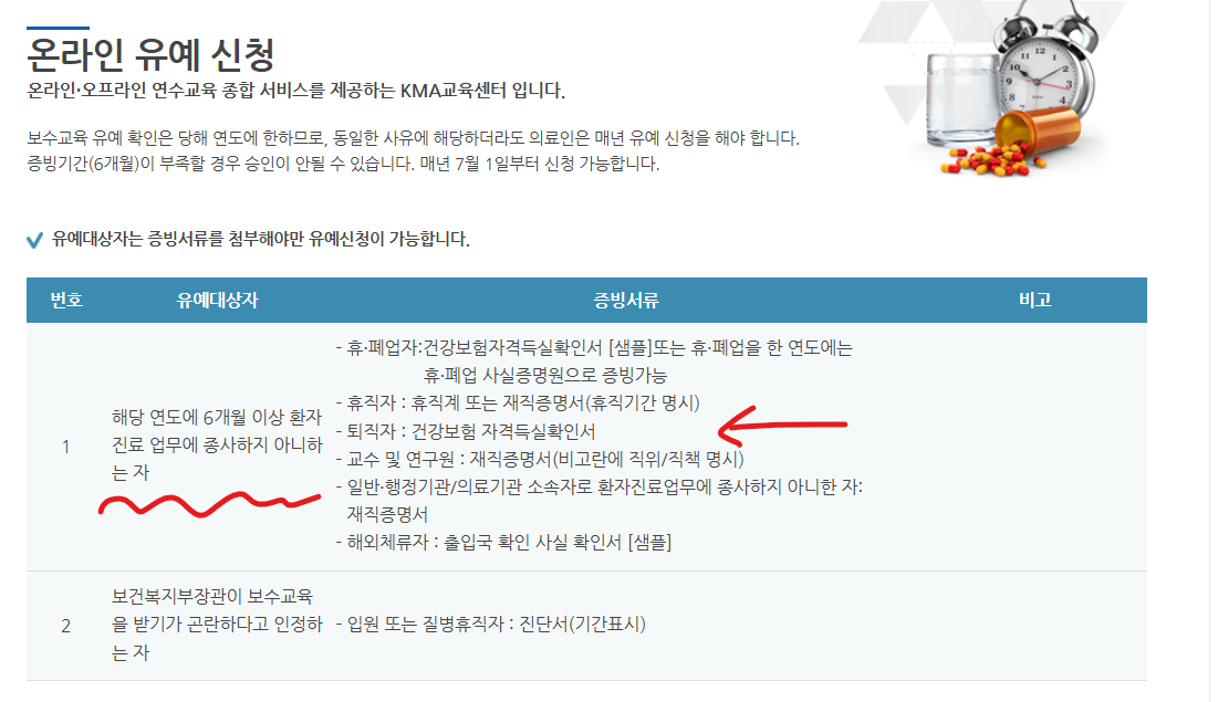 KMA 면제 신청 사이트: https://edu.kma.org/dataRoom/absolution_list2